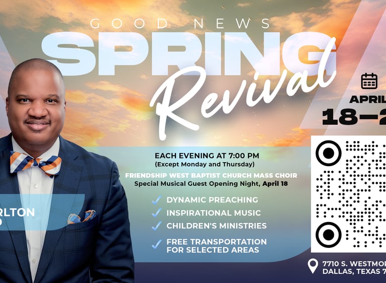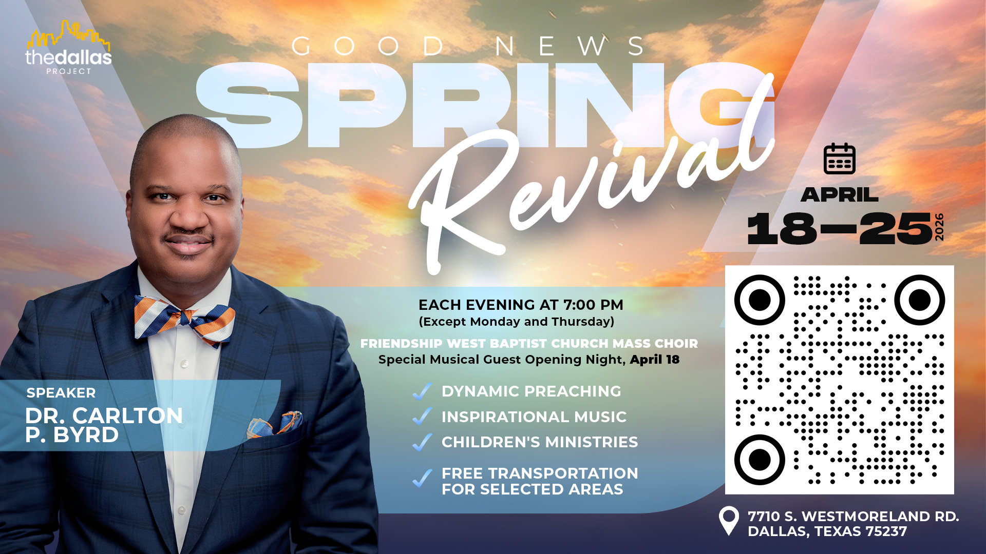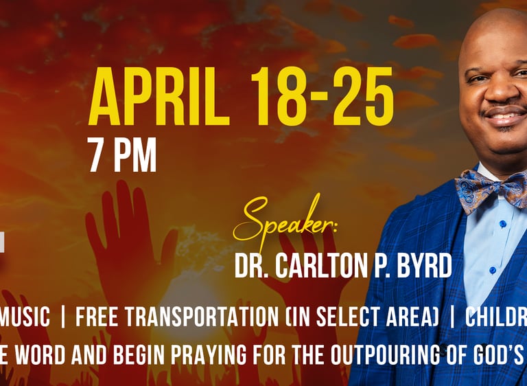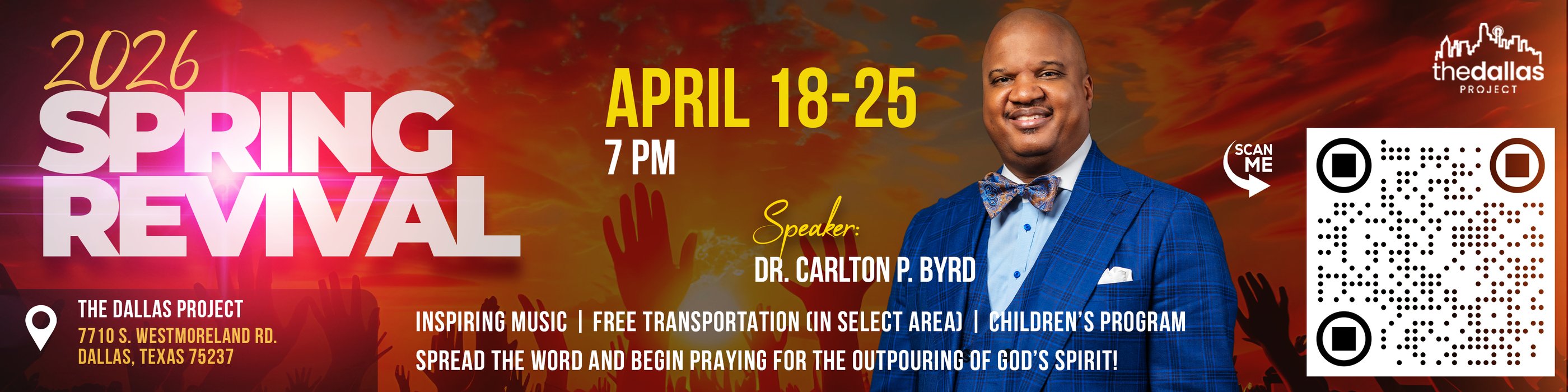 Join The Dallas Project for an unforgettable revival experience featuring Dr. Carlton P. Byrd, award-winning preacher and visionary leader. Each evening will ignite your faith and renew your hope as we gather together to lift up the name of Jesus.